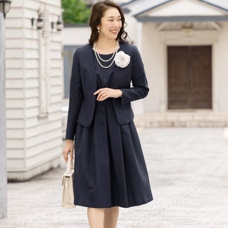 授業参観などの学校行事、発表会など、上品かつきちんと感が求められる場面に、定番のきれいめセレモニースタイルとして。