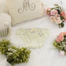 足口にはレースを使用し、ボトムスへも響きにくくなっております。