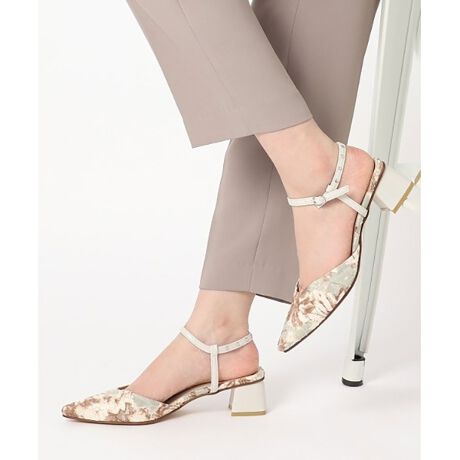 太ヒールジャカード柄ミュールパンプス