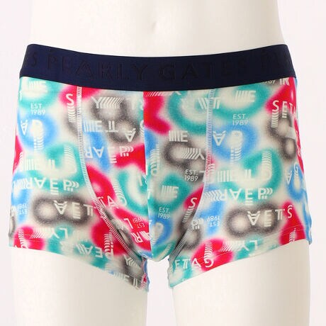 ネオンのようなカラフルなグラデーションとパーリーゲイツのロゴを組み合わせたデザインのボクサーパンツ。