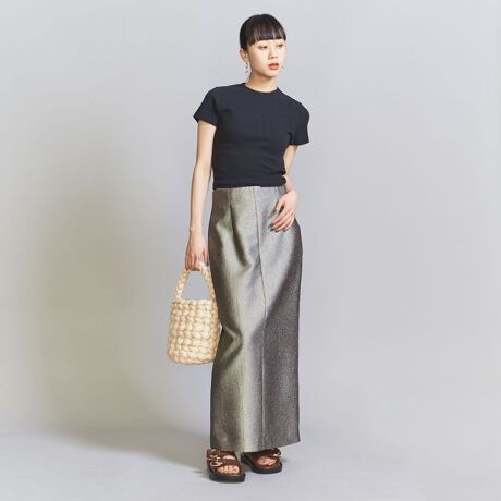 特徴のある素材感を活かした、シンプルですっきりとしたデザインのタイトスカート。