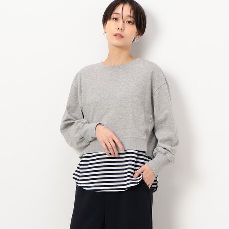 裏毛のプルオーバーとボーダーのタンクトップがセットになった、レイヤードアイテムです。
