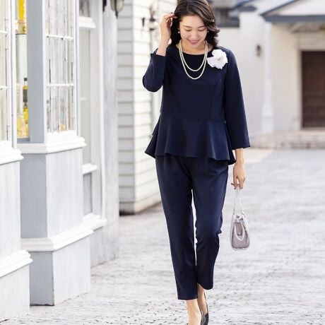 授業参観などの学校行事、発表会など、上品かつきちんと感が求められる場面に、定番のきれいめセレモニースタイルとして。働くママにうれしいオフィスにもなじむデザインなので、通勤スタイルや会社関係の行事にもお使いいただけます。