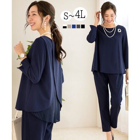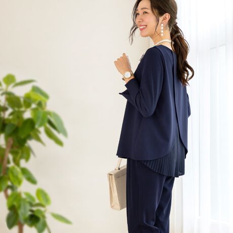 後ろプリーツトップスとパンツのセットアップです。
