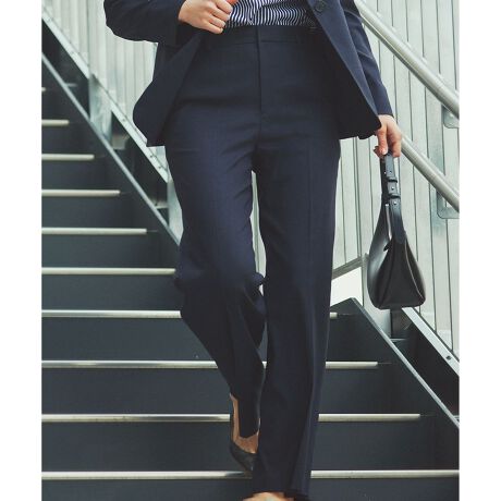 いつでも1本は常備していたいスタイリッシュな23区定番テーパードパンツ。どんなトップスにも合わせやすく、オフィスでもデイリーにも万能に活躍できる様、すっきりとした細身なシルエットに仕上げています。ウエストの後ろにはゴムで伸縮性を持たせ、ストレスのない履き心地です。同シリーズのジャケットとキレイ目セットアップで着たり、単品使いでブラウスと合わせても着られる、着回し抜群のパンツです。カラーは、女性らしく清潔感溢れるベージュ(#033)、大人上品なネイビー(#075)の2色展開です。