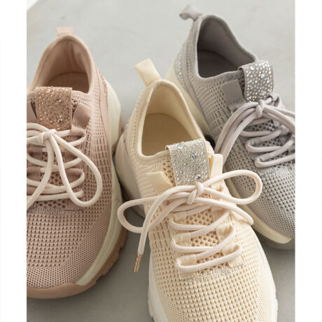 カジュアルな印象になり過ぎないホットフィックスストーンニットスニーカー