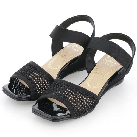 【春夏】スクエアトゥウエッジ・エコメッシュゴムベルトサンダル