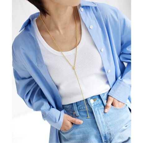 デザイン性のあるラリエットなら、ワンピースはもちろん