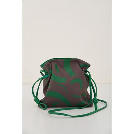 2023 Spring&Summer item ・AZULオリジナルのネイチャー柄が目を引く巾着バッグです。 ・内側には高級感のある合皮を使用しており、キャンバス素材の中にもモード感の漂うデザイン。
