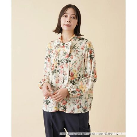 ロマンティックムードたっぷりにスタイリングできる、これからの季節らしいフラワープリントが広がるブラウス。光沢感のある素材を使用しており、ボウタイをふんわりと結んだかのようなフロントに、プリーツタックの装飾もエレガントな雰囲気を演出。一枚での着こなしはもちろん、プレーンなジャケットのインナーにも最適です。前身頃と袖口はボタン開閉可能、ブランドタグにはチュール刺繍を施しています。------------------------------------初夏なしありなし薄手ウォッシャブル(手洗い可)-------------------------------------※商品の色味は、撮影場所や光のあたり具合、お客様のお使いの機器により色味が違って見える場合がございます。予めご了承ください。※定価(税込)は、2023年06月29日のセール開始前の店舗における販売価格です。 ■□ROCHAS Premiere(ロシャス プルミエール)・・・ROCHASブランドのイメージとレリアンの着心地の良さである立体的なシルエットを兼ね備えたレリアンのブランドです。ロシャス社からのライセンス契約に基づき【株式会社レリアン】が独占的に販売しております。□■