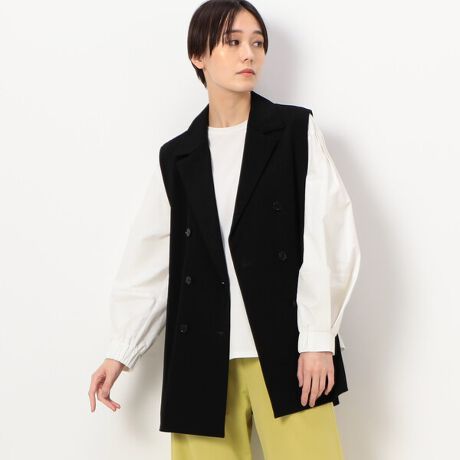 布帛ライクな目の細かいジャージー素材で仕立てた、ハイテンションジレです。
