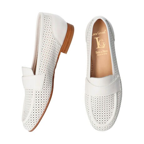 春夏らしい抜け感のあるパンチングレザーを使用したラウンドトウローファーです。