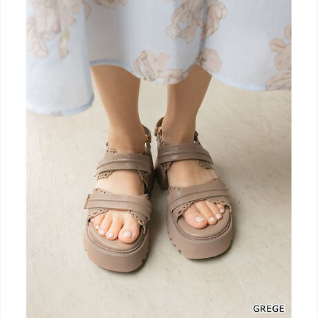 フェミニンムード漂うカットワークデザインのボリュームソールサンダル