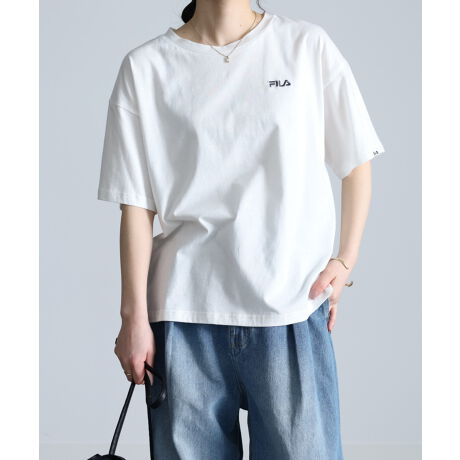 刺しゅう使いのワンポイントがコーディネートのアクセントになるFILAのロゴTシャツ。