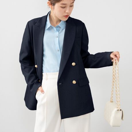 ・ドライタッチの梳毛調の素材を使用したダブルジャケット