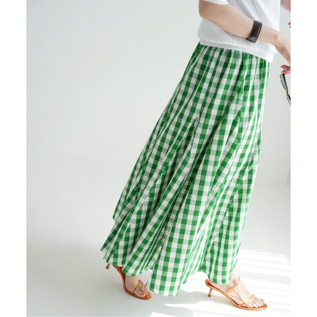 生地を贅沢に使用し、マチで切り替えを入れて裾が広がる綺麗なフレアのシルエット。