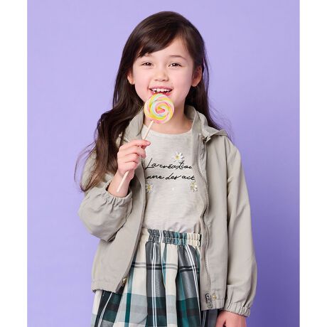 くすみカラーが大人っぽい、マウンテンパーカー。撥水加工を施しているので、雨の日でも安心して着られます。ハートのボタンとリボンポケットが、大人っぽい中にあるガーリーなポイント。フードが取れるトレっCIAOなので、通園・通学にも最適なアイテムです♪