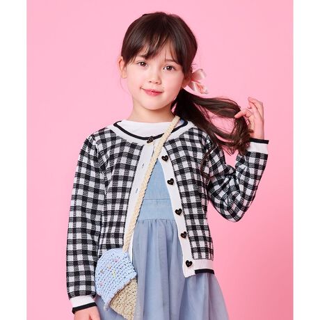 キッズ/長袖/羽織り/カーディガン/ギンガムチェック/レトロ/ハート/通園/通学/人気/デイリー/女の子/ガール/サスティナブル商品/コスパ高/トレンド