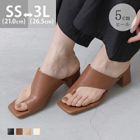 台形シェイプのミドルヒールで使いやすくスタイルアップできるトングサンダル。