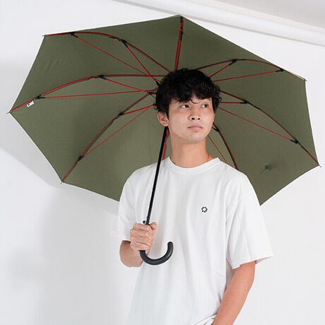 一般的な長傘に比べ受骨を増加し、強風や突風に強い裏返りにくい構造。ワンタッチオープンをはじめ、使い勝手の良いバランスで仕上げています。ペットボトルからの再生生地を使用しています。