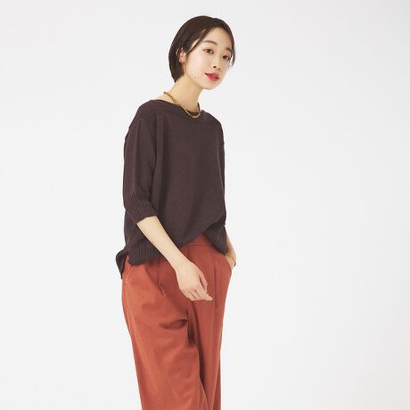 麻のようなドライタッチのコットンで夏まで着られる優秀なニット。