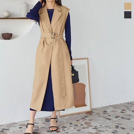 羽織るだけでオシャレ度がUPするトレンチデザインのロングジレが新登場。