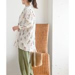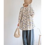 ナチュラルなニュアンスのフラワープリントが女性らしいブラウス。