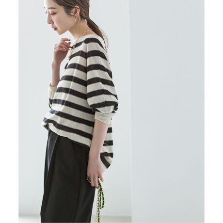 やや大きめのサイズ感とワイドピッチのボーダーが新鮮なニットソー。