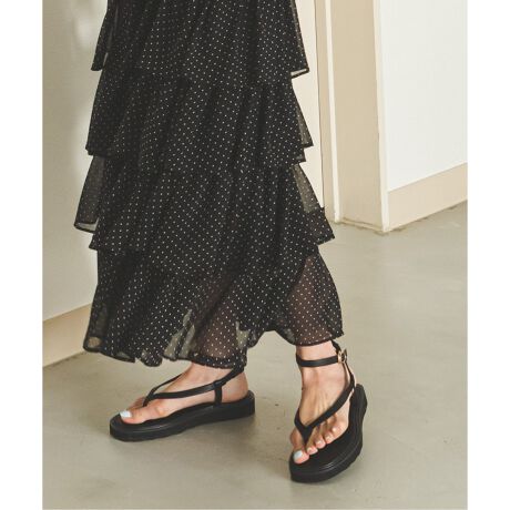 華奢なストラップをあしらったアンバランスさが今年らしいサンダル。