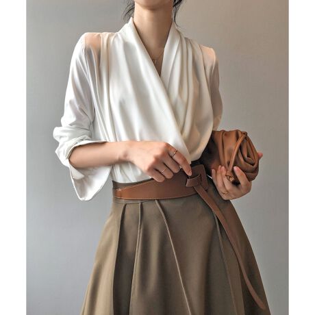 ドレープネックサテンブラウス