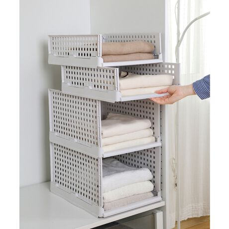 クローゼットで使用できる1段タイプの引き出し棚です。積み重ねできます。