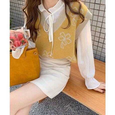 韓国風花柄ニットベスト