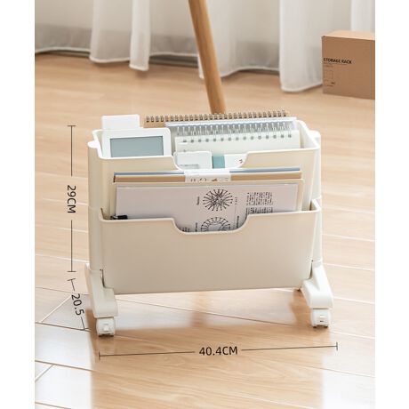 ファイルや本・書類を収納/整理できるキャスター付のファイルワゴン。仕切り付きで仕分けができる、 高品質PPを使用し1段の斜め棚を採用した、取り出しやすいワゴン。2段でデスク下用収納にも最適。オフィスや家庭向けの、本棚・ファイル収納に。 参考書籍を、すぐ手の届くデスク下に収納 デスク下のデッドスペースを最大限に活用するためのワゴンです。 デスク周りに置いておきたい参考書籍を収納し、デスクで作業をしながら使いたいときに便利です。 傾斜のある棚を採用しているので、デスク下でもスムーズに本の収納・取り出しができ、 水平の棚と比較して本が倒れにくい設計となっております。 荷物置きとしても ファイルやカバン以外にも防災グッズやタオルケット、除菌スプレーなどの荷物置きとしても活用できます。ファイルとカバンや小物類も一緒まとめられ るので、デスク上も足元もすっきり空間を実現できます。 スムーズに取り出せるキャスター付き 移動に便利なキャスター付きなので、掃除や物を取り出す際にも楽に動かすことができます。