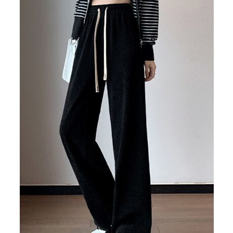コーディロイ見たいの触りが魅力のニットのワイドパンツ。