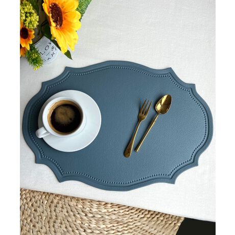 縁のスカラップと型押しのドットが華やかなプレイスマットです。