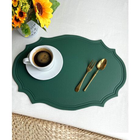 縁のスカラップと型押しのドットが華やかなプレイスマットです。