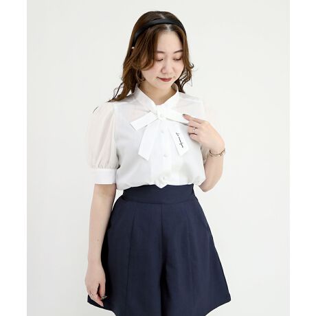 シアースリーブロゴ刺繍ボウタイブラウス