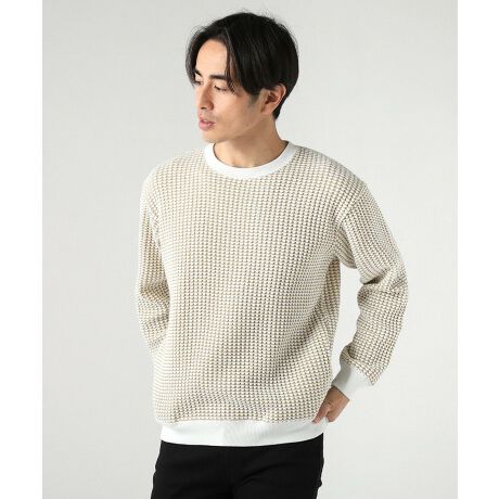 ぽこぽことした立体的な編地が特長的なワッフルニット。2色の糸で編み上げ、細かいチェック柄のような模様を作り出しました。