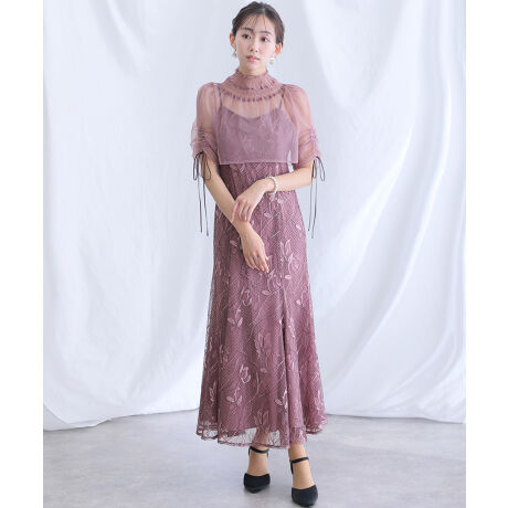 立体感のあるコードレースが高級感漂うデザインワンピース。