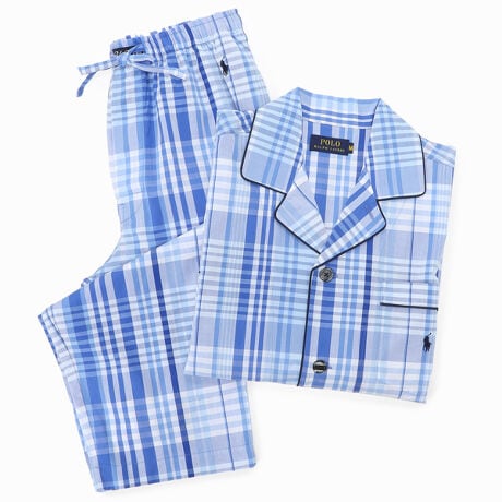 オーガニックコットン100%を使用した長袖パジャマセットです。表面がなめらかで光沢のある平織生地を採用。ゆったりとしたサイズ感で、リラックスした着心地が特長。ブルーベースのオーセンティックなチェック柄で、左胸のポケット上に入れたブランドアイコンのポロプレイヤー刺繍とパイピングがデザインポイント。シーズンを選ばず着用できる定番アイテムです。