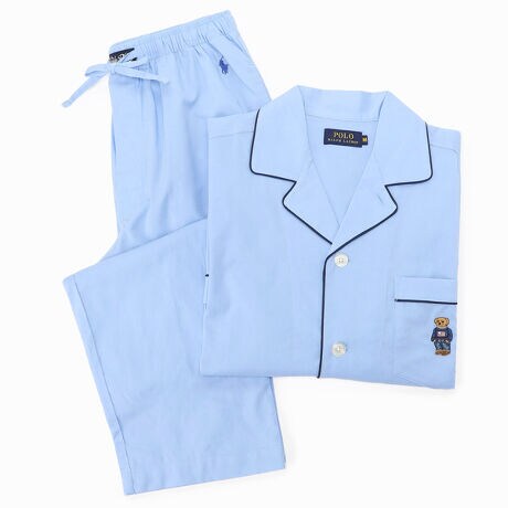 オーガニックコットン100%を使用した長袖パジャマセットです。表面がなめらかで光沢のある平織生地を採用。ゆったりとしたサイズ感で、リラックスした着心地が特長。左胸のポケット上に入れたアイコニックな今シーズンのPOLO BEAR(フラッグセーターベア)刺繍とパイピングがデザインポイントの、ギフトにも最適なアイテムです。シーズンを選ばず着用できる定番アイテムです。