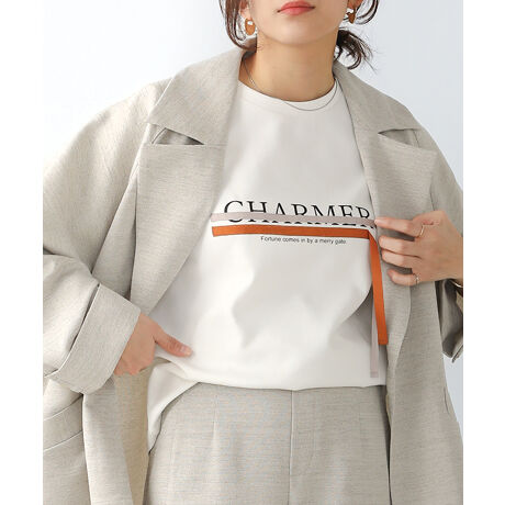 ロゴデザインにグログランテープを施したデコラティブなTシャツ