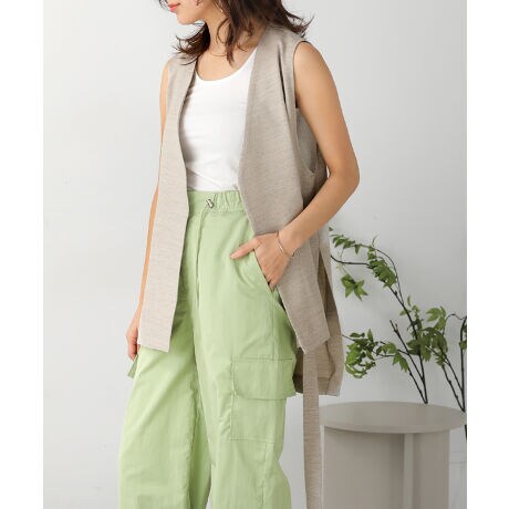ドライタッチで長時間着用していてもシワになりづらいリネン風の素材を使ったジレ。