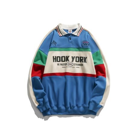 HOOK -original- アメカジロゴプリント配色切り替えレーシングポロスウェット