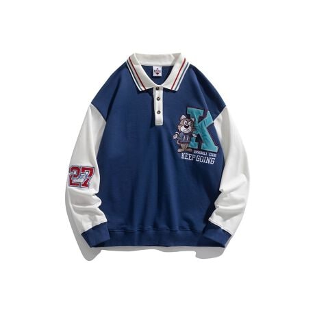 HOOK -original- アメカジキャラクター刺繍袖切り替えポロスウェット