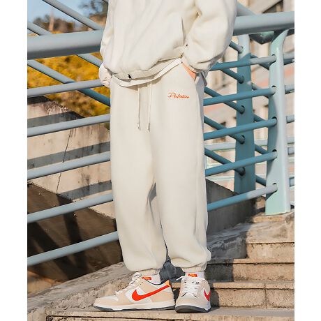 【HOOK】ベーシック 刺繍入り暖かいボアスウェットパンツ