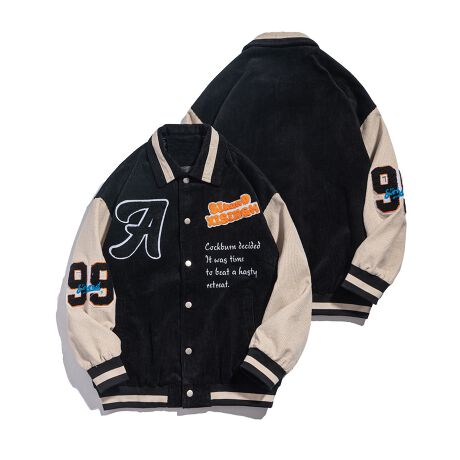 【HOOK】【新作】 アメカジ袖配色切り替えドッキングブルゾン ワッペン刺繍入り コーデュロイ素材