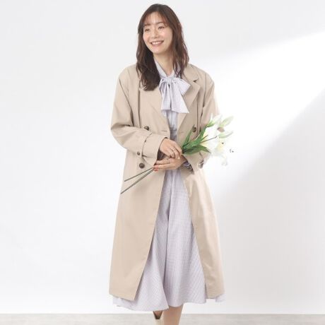 微光沢のあるツイル素材がキレイめコーデにマッチする上品顔のトレンチコート。