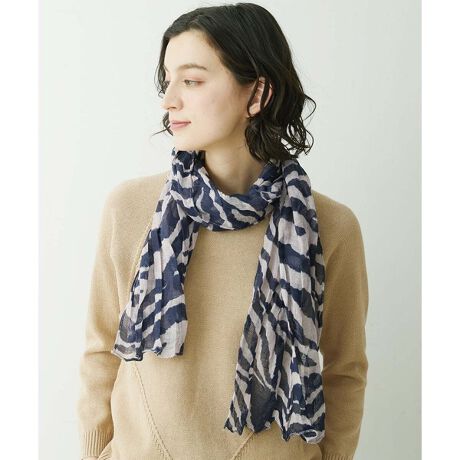 綿麻素材にワッシャー加工をした、人気シリーズのストール。今シーズンはゼブラ柄のプリントで登場しました。