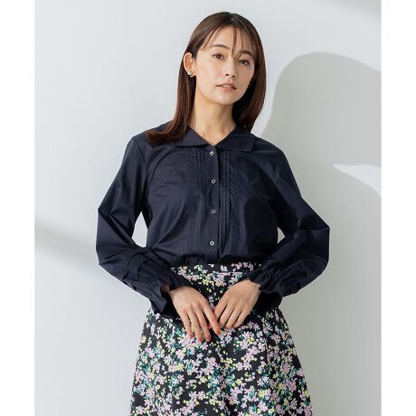 ■デザイン後ろ姿からちらりとのぞくセーラーカラーが大人可愛いブラウス。さり気ない襟の大きさながら存在感抜群で、1枚着としてはもちろんレイヤードアイテムとしても大活躍です。襟の周囲にレースをたたき重たくならないように始末、レイヤードした時に馴染みやすいようにしています。ややリラクシーなシルエットで、繊細なタックとレース使いがアクセント。素材の透け感が大人の甘さに仕上げています。1枚でさらっとサマになり、とことんフェミニンにスタイリングしても、デニムなどとあえてボーイッシュなアイテムとスタイリングしても、どちらのスタイルも素敵です。